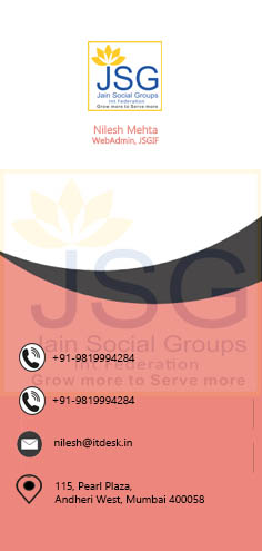 If you meet other JSGians, prospective customers in person (one to one meeting) or atleast you do telephonic conversations to market and sell your products or services, then our Digital Business Card will help convey your message in a more strategic way. JSGIF vCard can be used in your business and promote brand image of JSGIF. For sangini Forum & Yuva Forum we have given ready template too. This card will help you creating B2B environment among JSGians & outside JSGIF without filling up any forms. If you do not want to use it for Business, then just put your JSGIF related information. This concept is introduced by our Visionary International President Shri Lalitbhai U. Shah